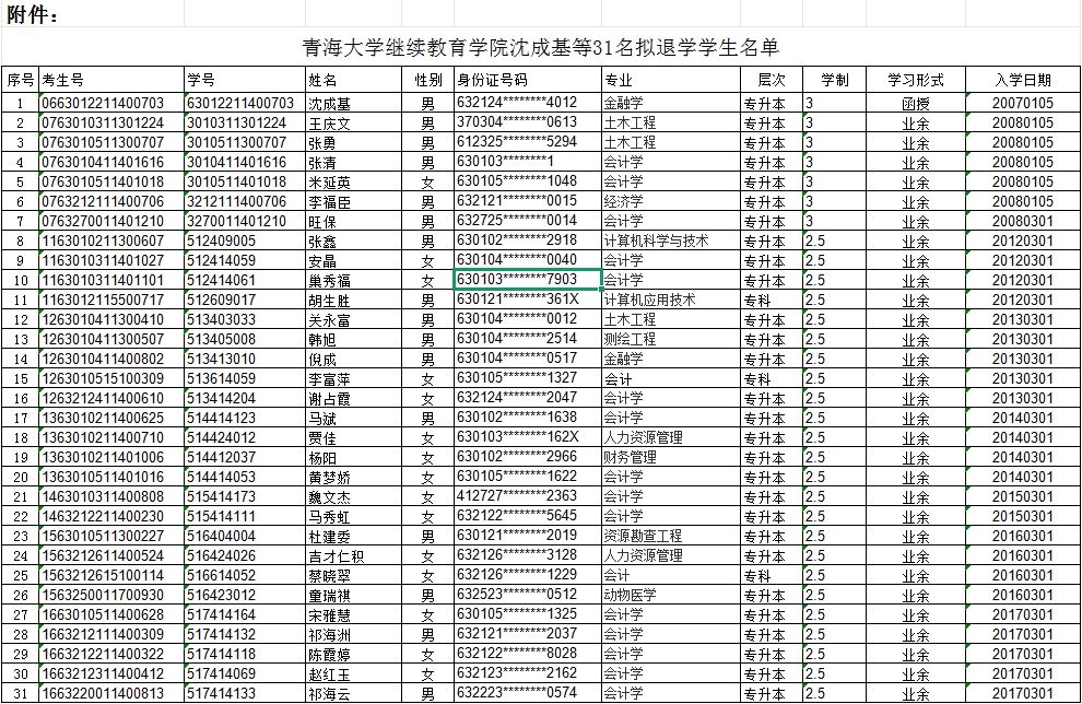 关于沈成基等31名休学学生(保留学籍)拟作退学处理的公告
